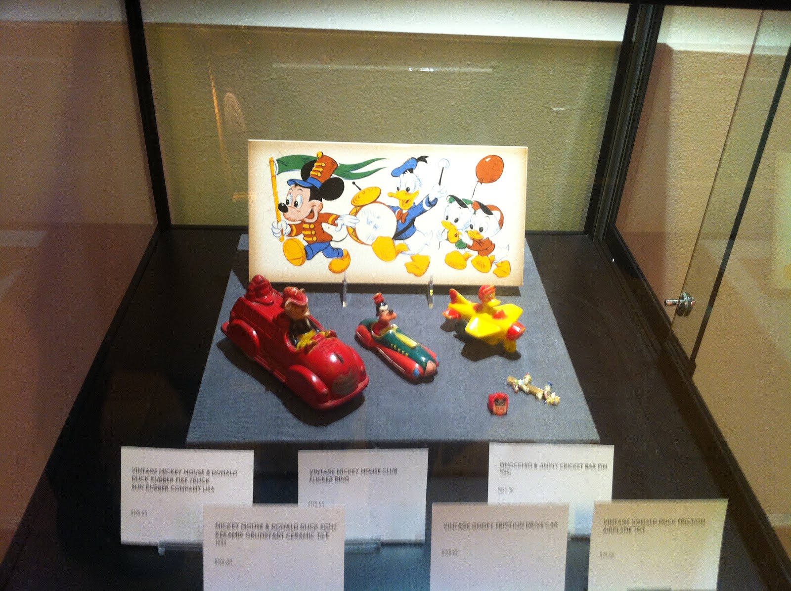If you are actually able to resist those pretty cakes, then you can stroll past some displays of antique Disney toys on your left, and screens with Disney cartoons on your right . . .